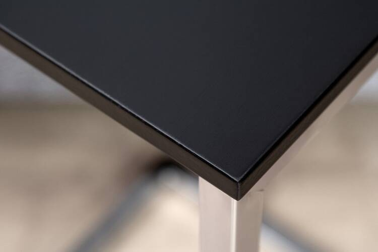 Czarny blat z MDF, tworzy elegancką całość z chromowaną podstawą.