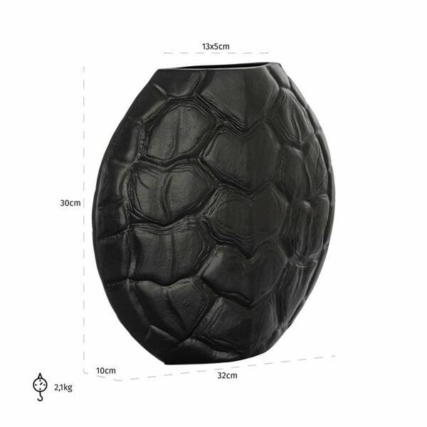 Wazon Ines, wykonany z aluminium, charakteryzuje się unikalnym, organicznym wzorem przypominającym skorupę żółwia.