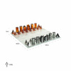 Figury szachowe wyróżniają się minimalistyczną estetyką - w bursztynowym i szarym kolorze - co nadaje im niezwykłego charakteru.