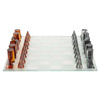 Każdy element zestawu, od planszy po figury, został precyzyjnie wykonany, podkreślając ich geometryczne formy oraz przejrzystość szkła.