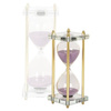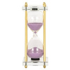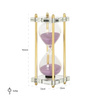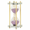 Subtelne złote elementy konstrukcji harmonijnie współgrają z transparentnym szkłem oraz delikatnym fioletowym piaskiem, który odmierzając czas, tworzy uspokajający efekt wizualny. Produkt dostępny jest w dwóch rozmiarach, co pozwala na dopasowanie go do różnych aranżacji wnętrz.