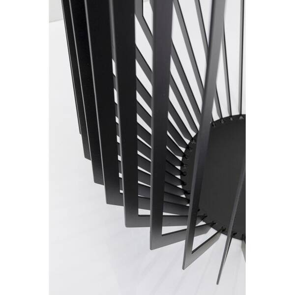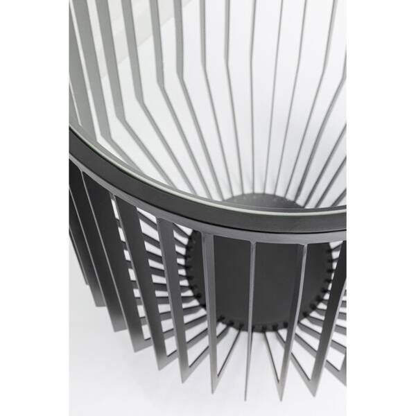 KARE stolik CORINNE 40 czarny. Stolik Corinne to doskonałe połączenie nowoczesnego designu i funkcjonalności, idealne do wnętrz w stylu współczesnym. Graficzna, malowana proszkowo stalowa rama przyciąga uwagę fascynującymi efektami wizualnymi, wprowadzając do pomieszczenia lekkość i elegancję. Przezroczysty blat z hartowanego szkła nie tylko dodaje stolikowi estetycznego wyrazu, ale również jest praktyczny i łatwy w pielęgnacji. Dzięki swojemu wyjątkowemu wzornictwu, stolik ten świetnie komponuje się z sofą lub fotelem, pełniąc rolę stylowego i praktycznego dodatku. Dostarczany w stanie zmontowanym, zapewnia natychmiastową gotowość do użytku, podkreślając funkcjonalność i wygodę użytkowania. To designerski mebel, który wzbogaci każde wnętrze swoją ponadczasową elegancją. Wymiary: wys. 50 cm / szer. 40 cm / gł. 40 cm Blat: śr. 40 cm Waga brutto: 7 kg.
