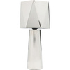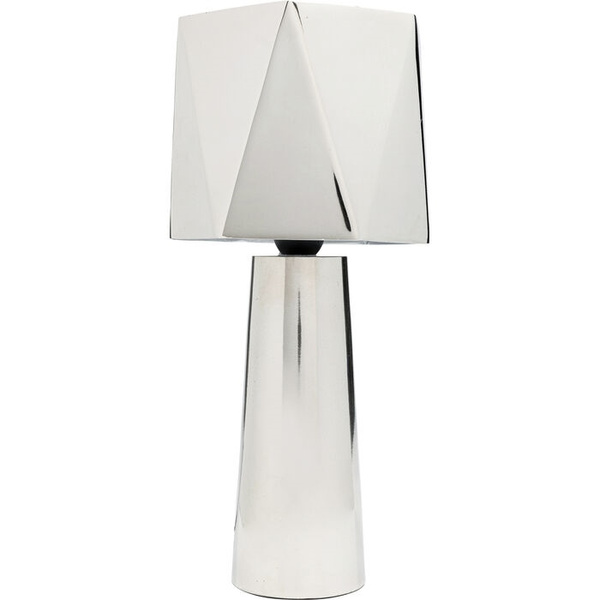 KARE lampa stołowa MARTHA 38 srebrna. Lampa stołowa Martha w kolorze srebrnym to przykład nowoczesnego designu w minimalistycznym stylu. Wykonana z niklowanego aluminium i malowanej proszkowo stali, wyróżnia się błyszczącą powierzchnią, która nadaje chłodnego, wyrafinowanego charakteru. Niezwykły, geometryczny kształt klosza inspirowany retro-futuryzmem przyciąga uwagę i dodaje wnętrzu wyjątkowego stylu. Martha doskonale sprawdzi się w nowoczesnych salonach, biurach czy sypialniach, stając się eleganckim i funkcjonalnym elementem wystroju. Światło: E27 max. 7W (brak w zestawie) Oprawa: wys. 38 cm / szer. 17 cm / gł. 17 cm Klosz: 14-16 cm Przewód: 200 cm Waga netto: 0,8 kg.