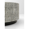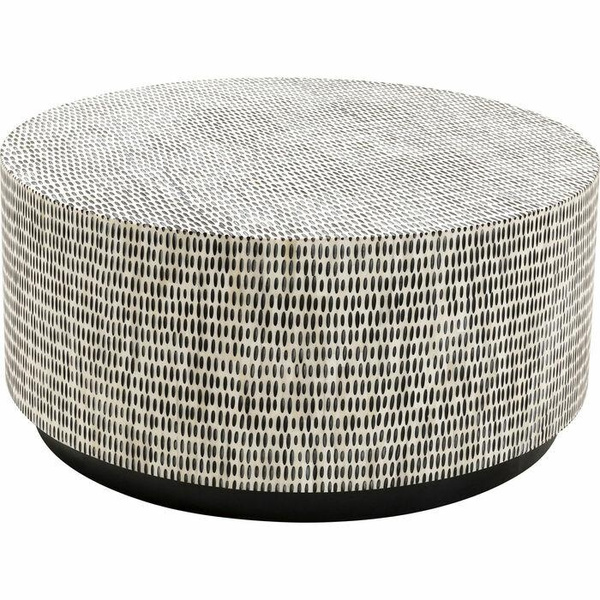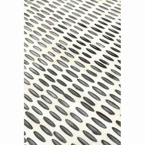 Okrągły kształt i czarno-biały geometryczny wzór dodają elegancji i wyrafinowania.