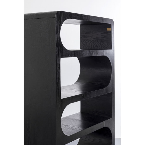 KARE regał FORMA 90x180 cm czarny. Regał Forma to doskonały wybór dla osób, które chcą urządzić swój dom w nowoczesnym stylu, nadając mu jednocześnie unikalny charakter. Solidne wykonanie, rzeźbiarski design i wyjątkowe kształty półek sprawiają, że stanowi wyrazisty element dekoracyjny każdego wnętrza. Klasyczna elegancja czarnego koloru podkreśla nowoczesny charakter regału, jednocześnie wprowadzając strukturę i wyrazistość do pomieszczenia. Inspiracją dla jego wzornictwa były płynne linie stylu z lat 60. i 70., które w połączeniu z płomienistym usłojeniem forniru jesionowego nadają meblowi unikalnego wyglądu. Regał wykonany z lakierowanego drewna jesionowego i mango jest nie tylko estetyczny, ale również trwały i łatwy w pielęgnacji. To połączenie funkcjonalności z wyjątkowym, ręcznie wykonanym designem. Wymiary: wys. 180 cm / szer. 90 cm / gł. 38 cm Waga netto: 50,05 kg.