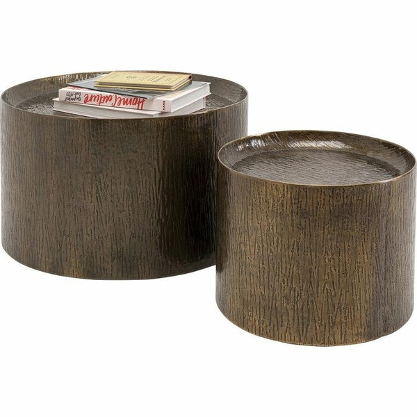 KARE zestaw stolików kawowych CASABLANCA. Zestaw stolików kawowych Casablanca w kolorze brązowym doda Twojemu wnętrzu ciepła i luksusu. To eleganckie rozwiązanie do salonu, które doskonale wpisuje się w najnowsze trendy. Wykonane z aluminium pokrytego mosiądzem, prezentują stylowy, lekko połyskujący efekt, idealny do wyrafinowanych aranżacji wnętrz. Zestaw zawiera dwa stoliki: mniejszy o wymiarach 30 x 40 x 40 cm oraz większy 35 x 60 x 60 cm, co pozwala na różnorodne zastosowania i kompozycje. Powierzchnia stolików imituje fakturę drewna, dodając im naturalnego uroku. Te funkcjonalne i designerskie stoliki świetnie sprawdzą się zarówno jako element dekoracyjny, jak i praktyczny mebel w salonie. Idealne do wnętrz w stylu nowoczesnym, klasycznym i glamour. Wymiary: wys. 35 cm / szer. 60 cm / gł. 60 cm Waga netto: 9 kg.