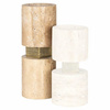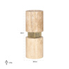 Świecznik Boaz to elegancki dodatek wykonany z naturalnego trawertynu w beżowym odcieniu, wzbogacony o detale z aluminium o subtelnym, złotawym wykończeniu. Charakteryzuje się nowoczesnym i minimalistycznym designem, który łączy naturalne piękno kamienia z industrialnym akcentem metalu.