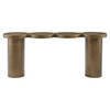 RICHMOND konsola BUBBA szczotkowane złoto. Konsola o nowoczesnym designie, wykonana w całości z metalu w kolorze szczotkowanego złota. Unikalny blat o falistym kształcie nadaje całości wyjątkowego charakteru, przyciągając wzrok i podkreślając luksusowy styl. Stabilna konstrukcja wsparta na dwóch masywnych cylindrycznych nogach zapewnia trwałość i funkcjonalność. Doskonale sprawdzi się jako element dekoracyjny w salonie, przedpokoju lub sypialni, dodając przestrzeni elegancji i wyrafinowania. Bubba to idealny wybór dla osób ceniących nowoczesne wzornictwo i wysoką jakość wykonania. Wymiary: wys. 75 cm / szer. 180 cm / gł. 45 cm Waga brutto: 69 kg.