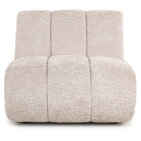 Fotel wykonano z wysokiej jakości materiałów, takich jak 100% poliester, drewno z recyklingu oraz pianka o wysokiej gęstości, gwarantując nie tylko estetyczny wygląd, ale także trwałość i komfort użytkowania. Unikalny kształt przypominający leżankę sprawia, że doskonale sprawdzi się w strefie relaksu, a zestawienie kilku sztuk razem stworzy wygodną przestrzeń do wypoczynku.