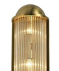 Szczotkowane złote wykończenie nadaje luksusowego charakteru, a delikatnie prążkowany klosz ze szkła subtelnie rozprasza światło, tworząc przytulną atmosferę.