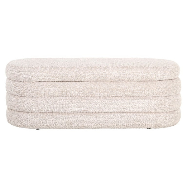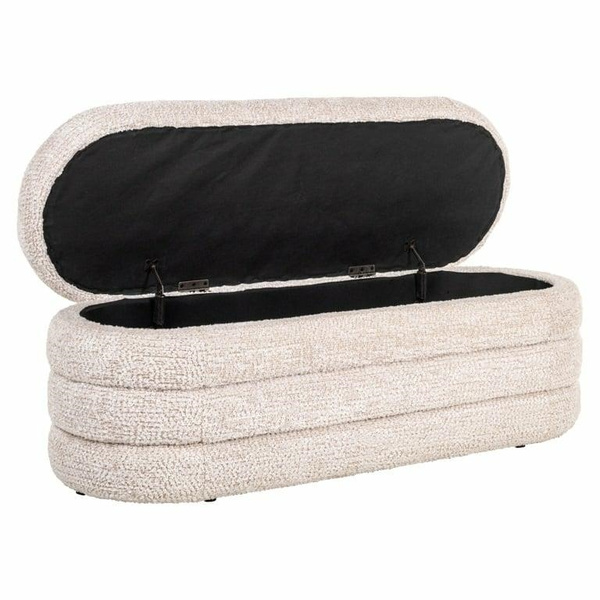 Jest tapicerowana przyjemną w dotyku tkaniną o nazwie Be Lovely 11 Cream, wnosząc przy tym odrobinę elegancji, a jednocześnie funkcjonując jako dodatkowe rozwiązanie do siedzenia.