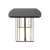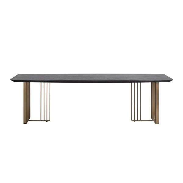 RICHMOND stół jadalniany MAVERICK 300. Połączenie wyrafinowanego designu z praktyczną funkcjonalnością. Blat, wykonany z MDF pokrytego fornirem dębowym w odcieniu węgla drzewnego, zachwyca stylowym wyglądem, jednocześnie zapewniając trwałość i odporność na codzienne użytkowanie. Złote wykończenie stalowej podstawy dodaje całości nuty luksusu i wyjątkowego charakteru. Dzięki geometrycznej konstrukcji stół wprowadza nowoczesny akcent, doskonale wyróżniając się w każdym wnętrzu. Maverick to idealne rozwiązanie zarówno na rodzinne spotkania, jak i eleganckie przyjęcia. Model dostępny jest również w innych wymiarach, co pozwala na dopasowanie go do różnorodnych przestrzeni i indywidualnych potrzeb. Wymiary: wys. 75 cm / szer. 300 cm / gł. 105 cm Waga brutto: 129 kg.