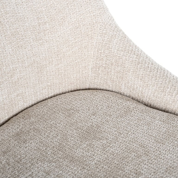 Jasna beżowa tkanina doda Twojemu wnętrzu lekkości i świeżości, a kubełkowe siedzisko z metalową czarną podstawą zapewnią wygodę