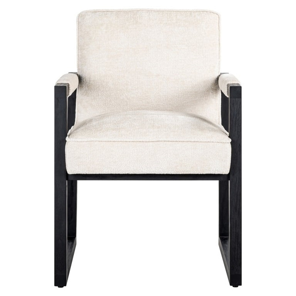 Krzesło tapicerowano wysokiej jakości tkaniną z białego szenilu (Bergen 900), która zapewnia miękkość i przyjemne w dotyku wykończenie.