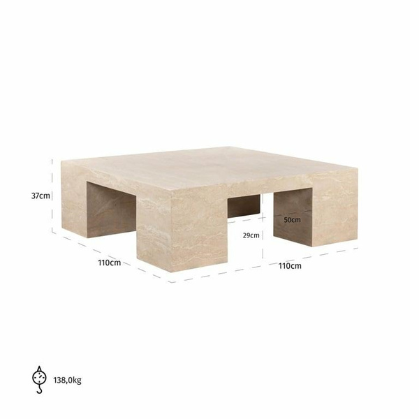 RICHMOND stolik kawowy BILTMORE beżowy. Wyjątkowa kolekcja wykonana z włoskiego trawertynu, który zachwyca swoją naturalną strukturą i eleganckim beżowym odcieniem. Minimalistyczna, ale jednocześnie wyrazista forma doskonale wpisuje się w nowoczesne wnętrza, dodając im luksusowego charakteru. Solidna konstrukcja z kamienia zapewnia trwałość i stabilność, a unikalny rysunek trawertynu sprawia, że każdy egzemplarz jest jedyny w swoim rodzaju. Stolik kawowy idealnie sprawdzi się w salonie, tworząc stylowe centrum aranżacji. Włoskie pochodzenie materiału podkreśla wysoką jakość wykonania oraz dbałość o detale. Biltmore obejmuje również inne elementy wyposażenia, które pozwolą stworzyć spójną i elegancką przestrzeń. Wymiary: wys. 37 cm / szer. 110 cm / gł. 110 cm Waga brutto: 142 kg.