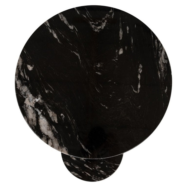 RICHMOND stolik TIBBY czarny / złoty. Stolik, który zachwyca niebanalną formą i szlachetnym wykończeniem. Nietypowa, zakrzywiona podstawa z aluminium w kolorze postarzanego złota stanowi efektowny kontrast dla dwóch czarnych blatów z marmuru Atlanta. Ręcznie wykonane żyłkowania kamienia nadają każdemu egzemplarzowi unikalny charakter. Solidna konstrukcja z dodatkiem MDF gwarantuje trwałość, a grubość blatu 1,8 cm podkreśla jego elegancki, luksusowy styl. Tibby doskonale odnajdzie się zarówno jako stolik pomocniczy w salonie, jak i designerski akcent w sypialni czy holu. To propozycja dla tych, którzy szukają mebli z duszą i wyrafinowaną formą. Wymiary: wys. 57,5 cm / szer. 58 cm / gł. 50 cm. Waga brutto: 24,7 kg.