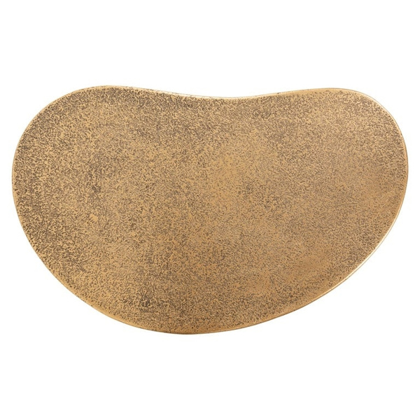 Wykonany z trwałego MDF-u, zachwyca organicznym kształtem blatu oraz subtelną strukturą powierzchni w odcieniu postarzanego złota.