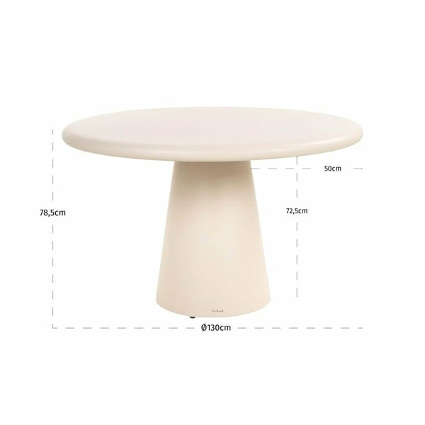 RICHMOND stół jadalniany / ogrodowy URBAN BLOOM 130. Harmonijne połączenie minimalistycznej formy i nowoczesnej funkcjonalności. Subtelna, beżowa kolorystyka oraz zaokrąglone linie sprawiają, że stół prezentuje się lekko i elegancko. Okrągły blat o średnicy 130 cm wsparty jest na zwężającej się ku dołowi podstawie, która dodaje mu rzeźbiarskiego charakteru. Wykonany z wysokiej jakości materiałów - betonu, metalu i włókna, przeznaczony jest zarówno do wnętrz, jak i na zewnątrz. Idealnie sprawdzi się w nowoczesnej jadalni, na tarasie czy w ogrodzie jako centralny punkt spotkań i posiłków. Urban Bloom to wyrazisty design, który wprowadza do przestrzeni spokój, miękkość form i współczesną elegancję. Wymiary: wys. 77 cm / szer. 130 cm / gł. 130 cm. Waga brutto: 106,2 kg.