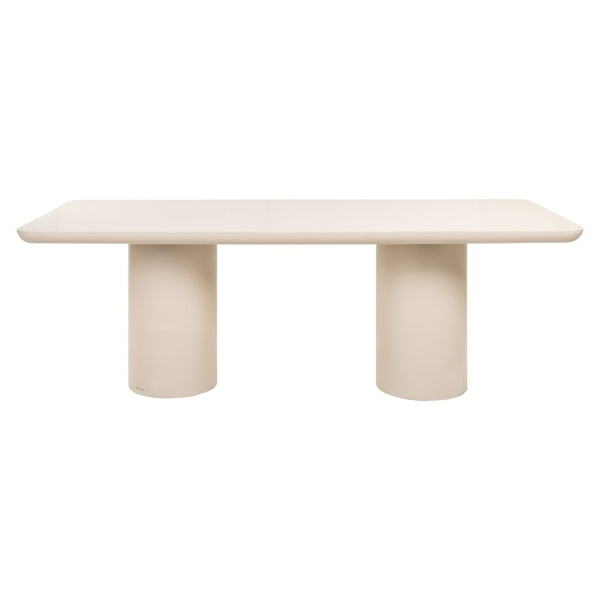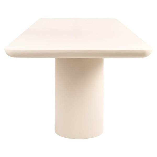 Prostokątny blat o zaokrąglonych krawędziach oraz cylindryczna podstawa tworzy harmonijną kompozycję, która zachwyca subtelnością i spokojem formy.