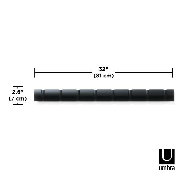 UMBRA wieszak na ubrania Flip 8 czarny. Nowoczesny, funkcjonalny, montowany na ścianie wieszak na ubrania z dużą ilością miejsca. Posiada osiem haczyków, które chowają się, gdy nie są używane, tym samym zapewniając elegancki wygląd. Jest to idealne miejsce do wieszania płaszczy, kurtek czy toreb. Świetnie sprawdzi się w takich pomieszczeniach jak przedpokój, gdzie ilość miejsca jest ograniczona. Zestaw montażowy dołączony jest do zestawu. Wymiary: wys. 7,6 cm / szer. 81,3 cm / gł. 2,5 cm Maksymalne obciążenie: 1,9 kg (każdy element) Waga brutto: 1,1 kg.