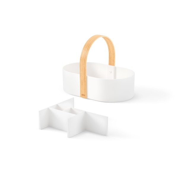 Wyjmowana przegroda pozwala na lepszą organizację zawartości, a gumowe nóżki chronią powierzchnie przed zarysowaniami i przesuwaniem.