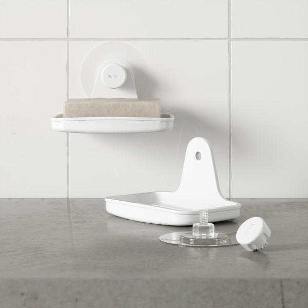 Dzięki zintegrowanym otworom drenażowym woda nie gromadzi się na dnie, co pomaga utrzymać mydło w idealnym stanie. Instalacja jest niezwykle prosta i bezpieczna dla powierzchni samoprzylepne paski mocujące nie uszkadzają płytek, betonu ani płyt kartonowo-gipsowych.