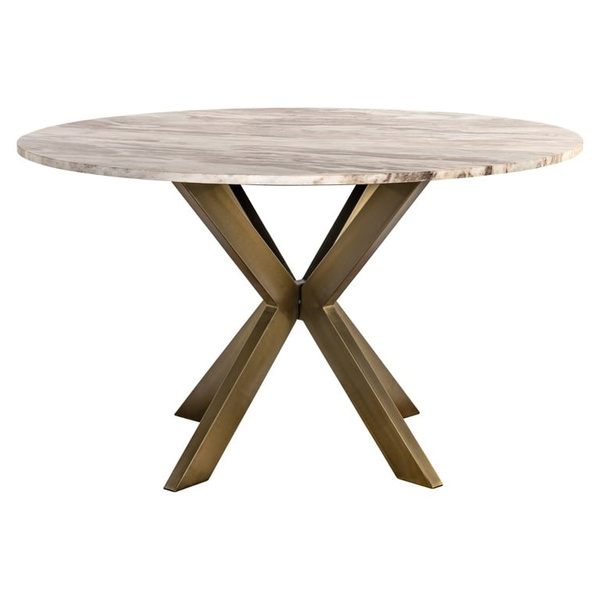 Okrągły blat z marmuru Toronto, o wyjątkowym użyleniu i grubości 1,6 cm, emanuje naturalnym pięknem i wyrafinowaniem.