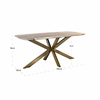 RICHMOND stół jadalniany BOTTEGA 190. Kolekcja Bottega emanuje ponadczasową elegancją i majestatycznym charakterem. Zaokrąglony blat wykonany z marmuru Toronto przyciąga wzrok subtelnymi żyłami i naturalnymi odcieniami beżu oraz szarości, doskonale komponując się z podstawą wykonaną z mosiądzu o satynowym wykończeniu. Geometryczna forma podstawy, inspirowana rzeźbiarskimi strukturami, dodaje konstrukcji lekkości i nowoczesnego sznytu. Idealny wybór do wyrafinowanych wnętrz, w których estetyka idzie w parze z funkcjonalnością. Wymiary: wys. 76 cm / szer. 190 cm / gł. 90 cm Waga brutto: 147 kg.