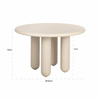 Zaokrąglony blat o grubości 5 cm opiera się na czterech masywnych, cylindrycznych nogach, tworząc harmonijną bryłę inspirowaną geometrią.