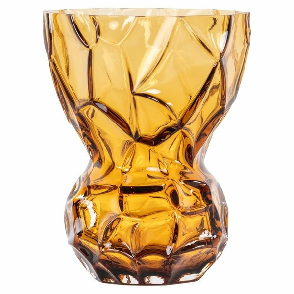 Oryginalny element dekoracyjny wykonany ze szkła w odcieniu brązowym, bursztynowym.