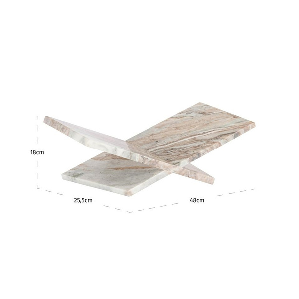 RICHMOND stojak do czytania książki BELICIA. Elegancki dodatek wykonany z naturalnego marmuru Toronto. Oryginalna, krzyżowa forma stanowi nie tylko praktyczne rozwiązanie do ekspozycji książek czy albumów, ale również przyciągającą wzrok dekorację. Ciepłe, beżowo-brązowe tonacje marmuru nadają mu szlachetnego charakteru, idealnie komponującego się z wnętrzami w stylu klasycznym, nowoczesnym czy eklektycznym. Dzięki solidnej konstrukcji i naturalnemu ciężarowi, stojak zapewnia stabilność nawet dla większych publikacji. Każdy egzemplarz cechuje się unikalnym rysunkiem kamienia, co czyni go niepowtarzalnym. Belicia to propozycja dla miłośników eleganckich detali i wysokiej jakości wykończenia. Wymiary: wys. 18 cm / szer. 47 cm / gł. 25,5 cm Waga netto: 10,3 kg.