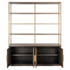 Przestronna część otwarta z półkami umożliwia stylową ekspozycję dekoracji, książek czy ceramiki, natomiast dolna część z czterema drzwiami oferuje praktyczne miejsce do przechowywania. Wszystkie drzwi wyposażono w system cichego domykania, co podnosi komfort użytkowania.