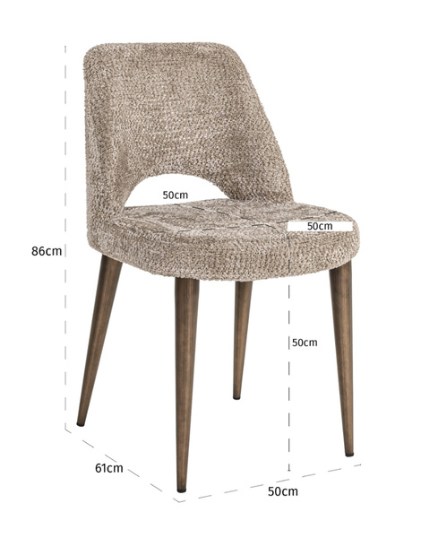 Tapicerowane miękką, strukturalną tkaniną w naturalnym odcieniu, zapewnia komfort siedzenia oraz estetyczny wygląd.
