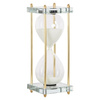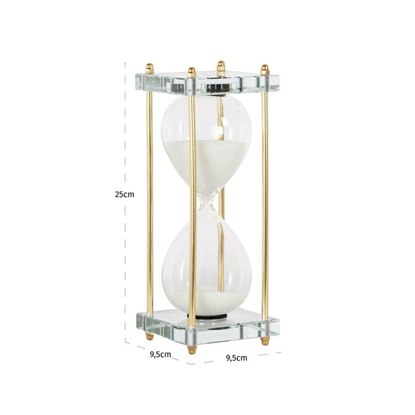 Biały piasek wewnątrz klepsydry tworzy efekt upływającego czasu, wprowadzając do wnętrza spokój i harmonię.
