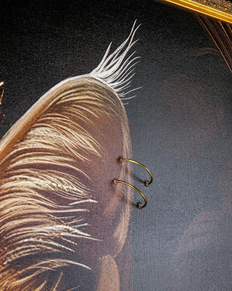 Biżuteria w tym okrągłe kolczyki oraz łańcuszek zostały wyróżnione prawdziwymi elementami ze stali nierdzewnej.