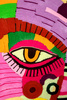 Przedstawiona postać jest artystycznie zinterpretowana przez połączenie różnorodnych kolorów, kształtów i stylów, co tworzy dynamiczną i niepowtarzalną kompozycję.