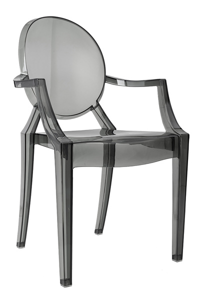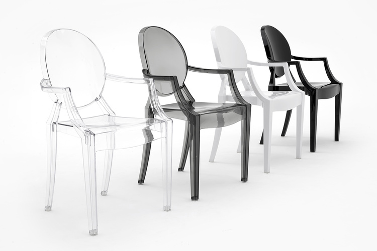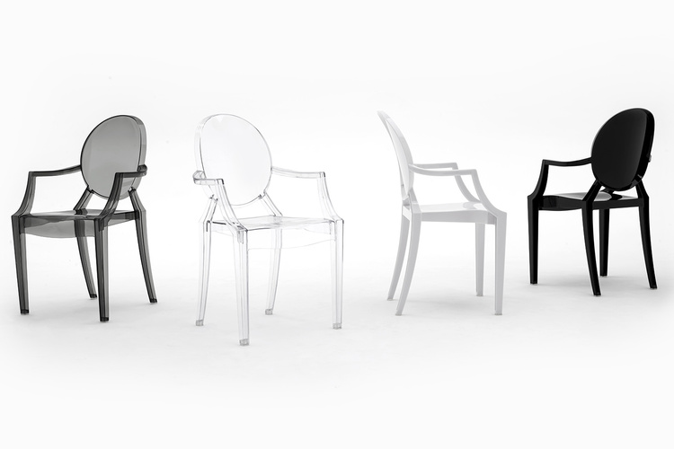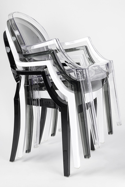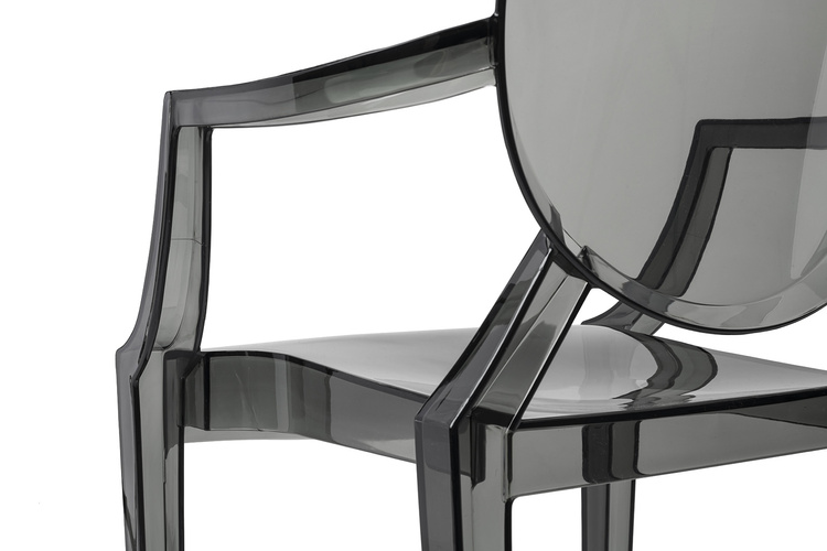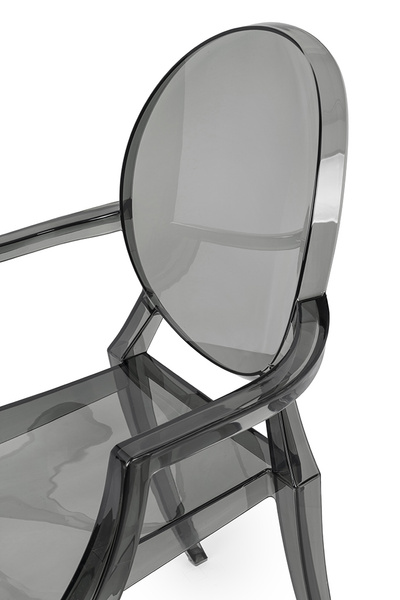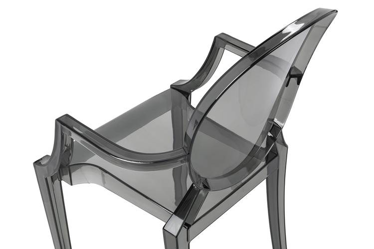 Model ten nawiązuje stylem do mebli w stylu Ludwika XV. Dzięki zastosowaniu przezroczystego materiału, krzesło optycznie