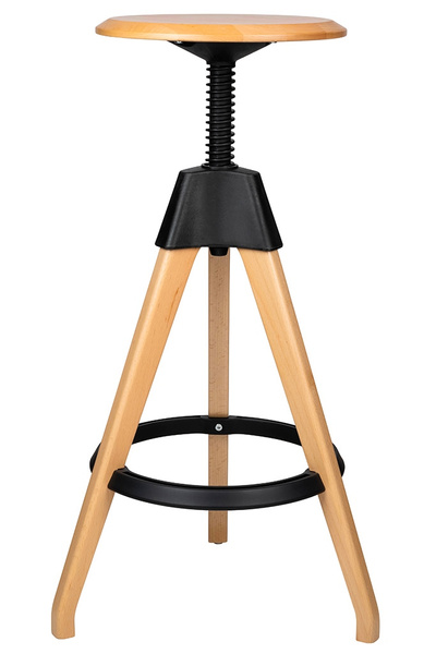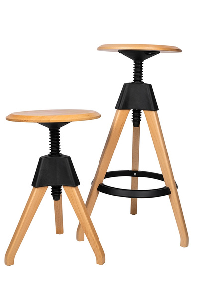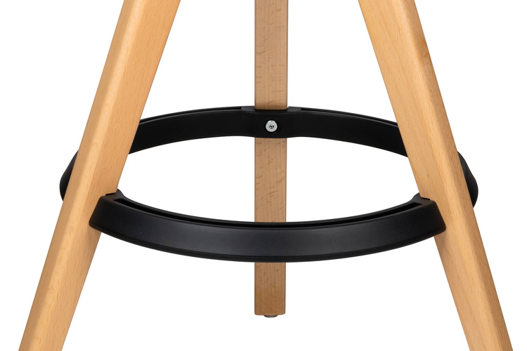 Nogi oraz siedzisko wykonano z drewna bukowego, a kolorowe elementy z wytrzymałego tworzywa sztucznego w kolorze czarnym matowym.