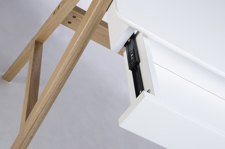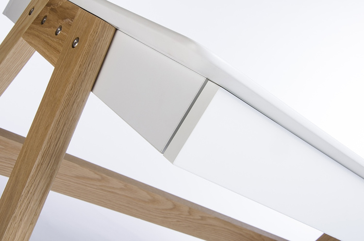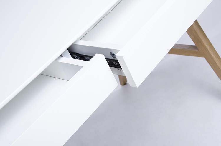 Blat i szuflady wykonane z MDF-u w kolorze białym matowym.