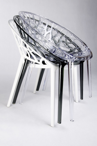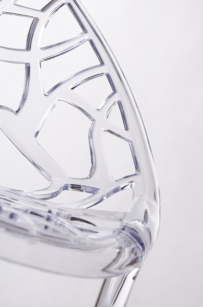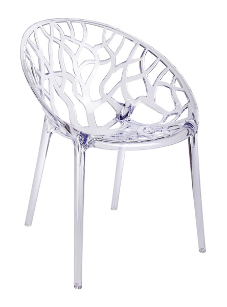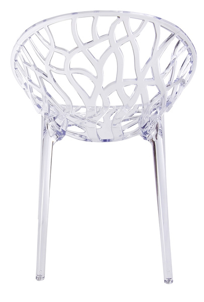 Krzesło Koral w całości zostało wykonane z przezroczystego poliwęglanu.