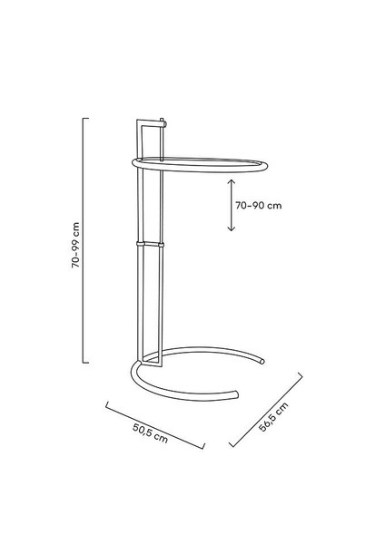 Grey to stolik wykonany ze stali, polerowanej na wysoki połysk. Blat wykonany z transparentnego hartowanego szkła. Grey posiada regulowaną wysokość blatu. Wymiary: wys. 70 - 99 cm / szer. 56,5 cm / gł. 50,5 cm Waga netto: 8 kg Wymiary opakowania: 58 cm / 58 cm / 58 cm.