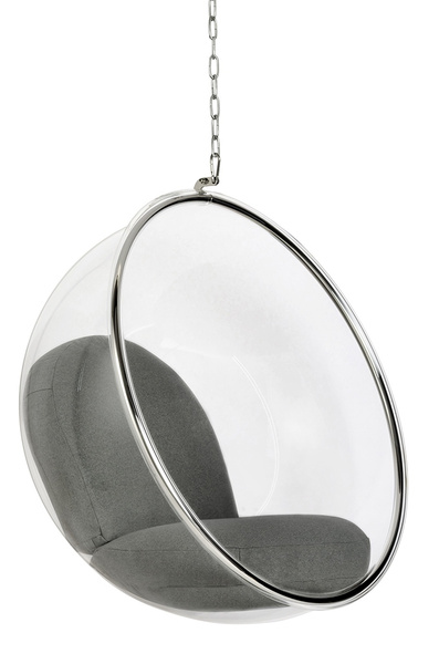 Fotel wiszący BUBBLE poduszka szara - korpus akryl, poduszka wełna