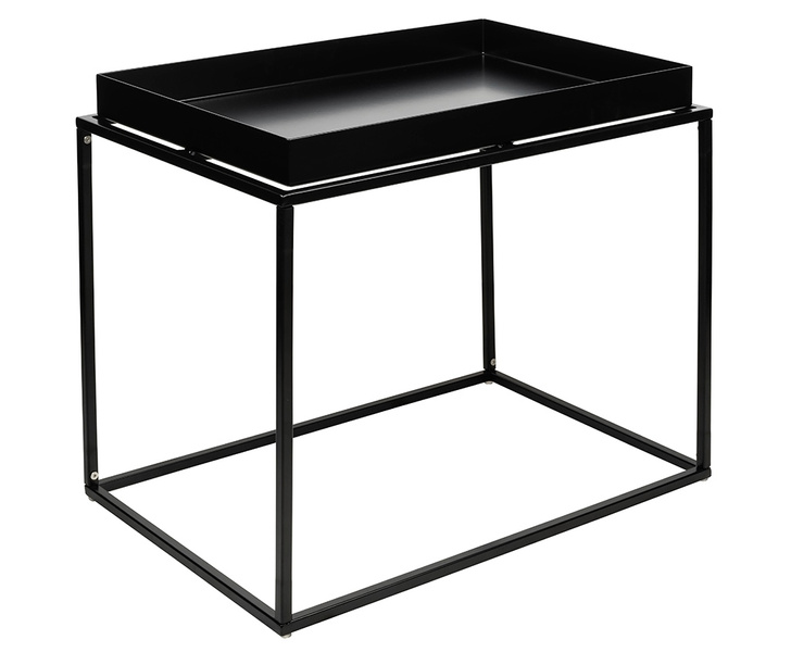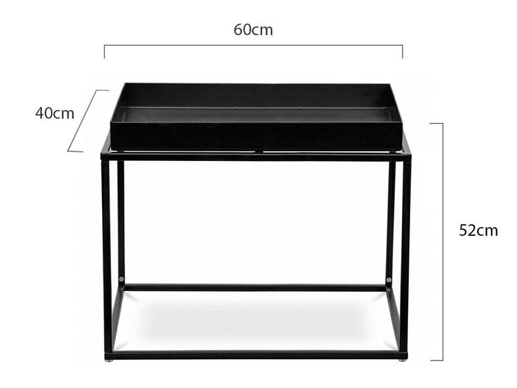 Ritta XL to stolik kawowy o prostokątnym kształcie. Dzięki niewielkim gabarytom, Ritta sprawdzi się w pomieszczeniach urządzonych w nowoczesnym lub industrialnym stylu. Cały stolik wykonano z metalu w kolorze czarnym satynowym. Prostokątny blat wyglądem przypomina tacę, a jego podniesione brzegi zabezpieczają przedmioty przed zsunięciem się na podłogę. Wymiary: wys. 52 cm / szer. 60 cm / gł. 40 cm Waga netto: 8 kg Wymiary opakowania: 66,5 cm / 46,5 cm / 13 cm