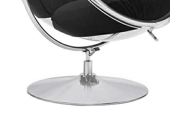 Całość stoi na okrągłej podstawie wykonanej ze stali chromowanej. Dzięki zastosowaniu takich materiałów, fotel prezentuje się elegancko i nowocześnie.