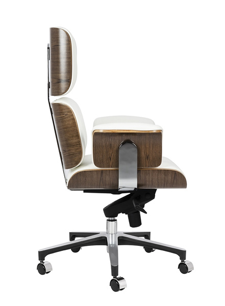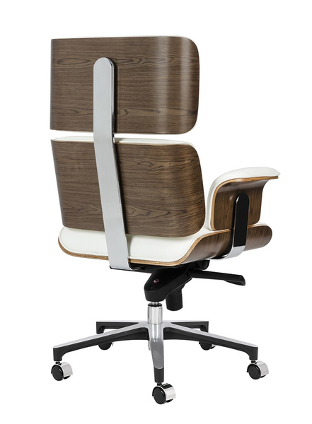 Fotel biurowy LOUNGE BUSINESS biały z orzechowym drewnem.