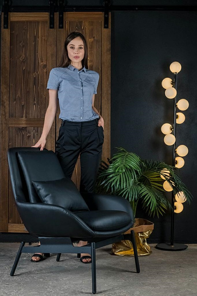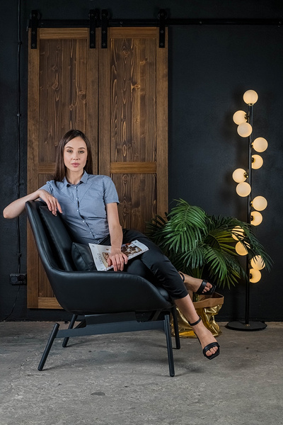 Fotel LAZY. Siedzisko oraz dekoracyjne poduszki w całości tapicerowane są czarną ekoskórą. Szeroka metalowa podstawa lakierowana na kolor czarny sprawia, że konstrukcja fotela jest niezwykle stabilna, co zapewnia wygodę i komfort. Głębokość siedziska możemy zmieniać w zależności od ilości wykorzystanych poduszek. Możliwość personalizacji obicia ,wyjątkowy design oraz solidne wykonanie sprawia, że Lazy doskonale odnajdzie się w każdej aranżacji. Wymiary: wys. 88 cm / szer. 73 cm / gł. 80 cm Wysokość do krawędzi siedziska: 55 cm Wysokość do podłokietników: 45 cm Siedzisko: gł. 68 cm Poduszki: 1) 50 cm / 47 cm / 5 cm 2) 40 cm / 30 cm / 10 cm Waga netto: 17 kg Sposób wysyłki: paleta.