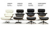 Cały fotel tapicerowany jest naturalną włoską skórą w kolorze czarnym. Korpus fotela jak i podnóżka został wykonany z giętego na ciepło drewna