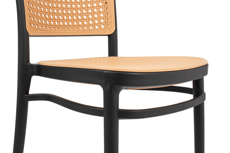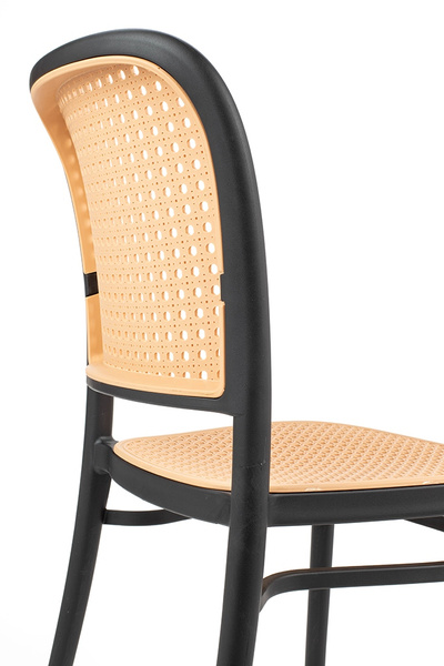 Ażurowe siedzisko i oparcie o wzorze inspirowanym rattanem nadają lekkości oraz wyjątkowego, stylowego wyglądu.