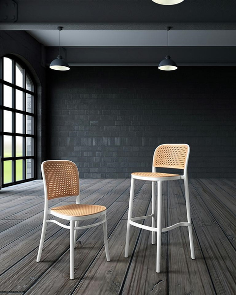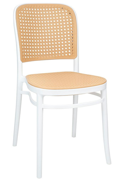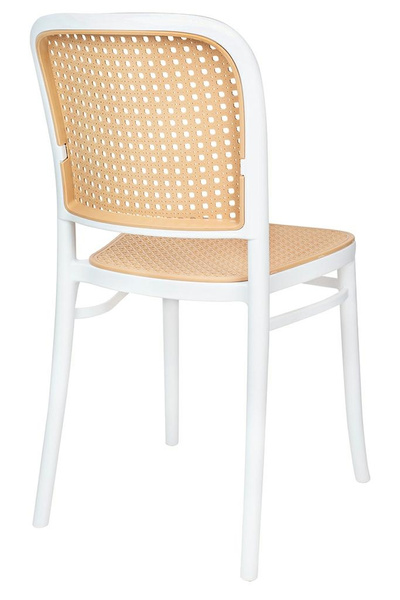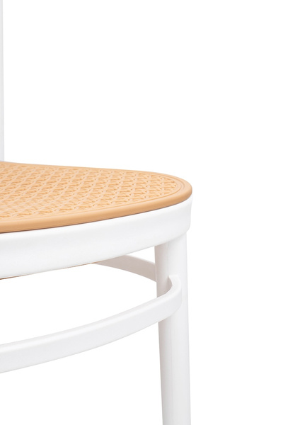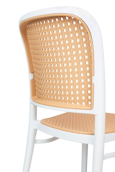 Ażurowe siedzisko i oparcie inspirowane rattanem nadają subtelności oraz naturalnego, stylowego wyglądu.