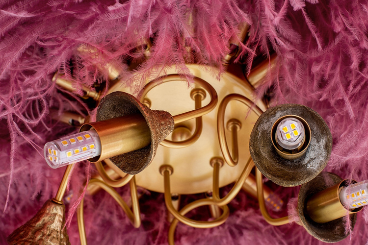 złotym, który możemy wykorzystać jako element dekoracyjny. Motyw piór to akcent charakterystyczny dla stylu glamour czy art déco.